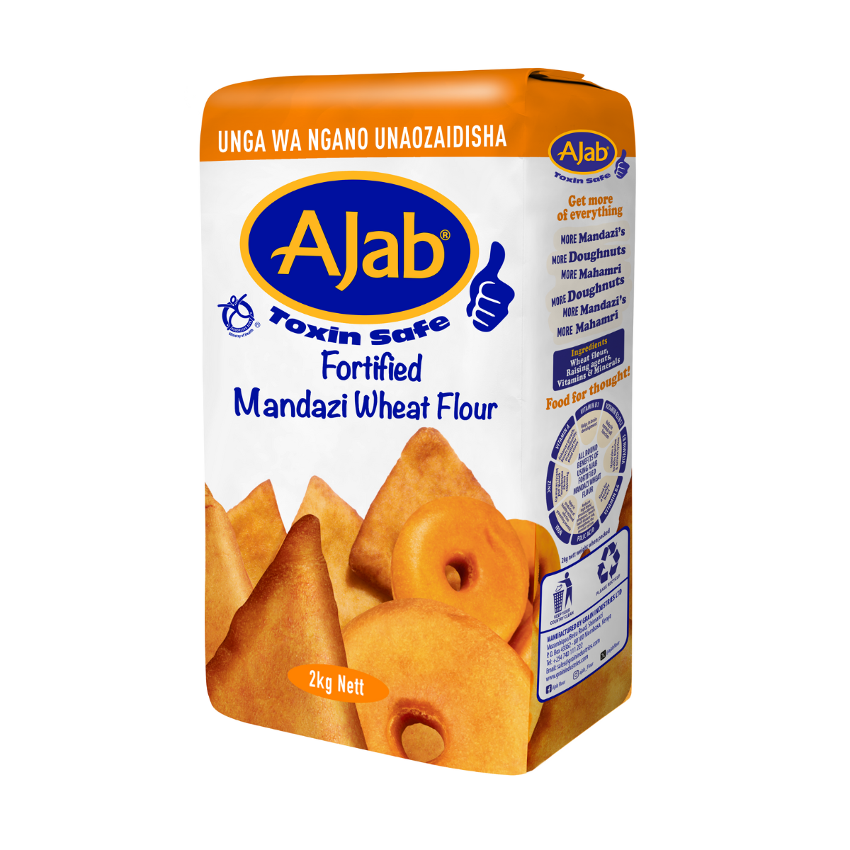 Ajab offers a diverse range of flours tailored for different culinary needs, including All Purpose Home Baking Flour, Chapati Flour, Atta Mark 1 Flour, and Mandazi Flour.