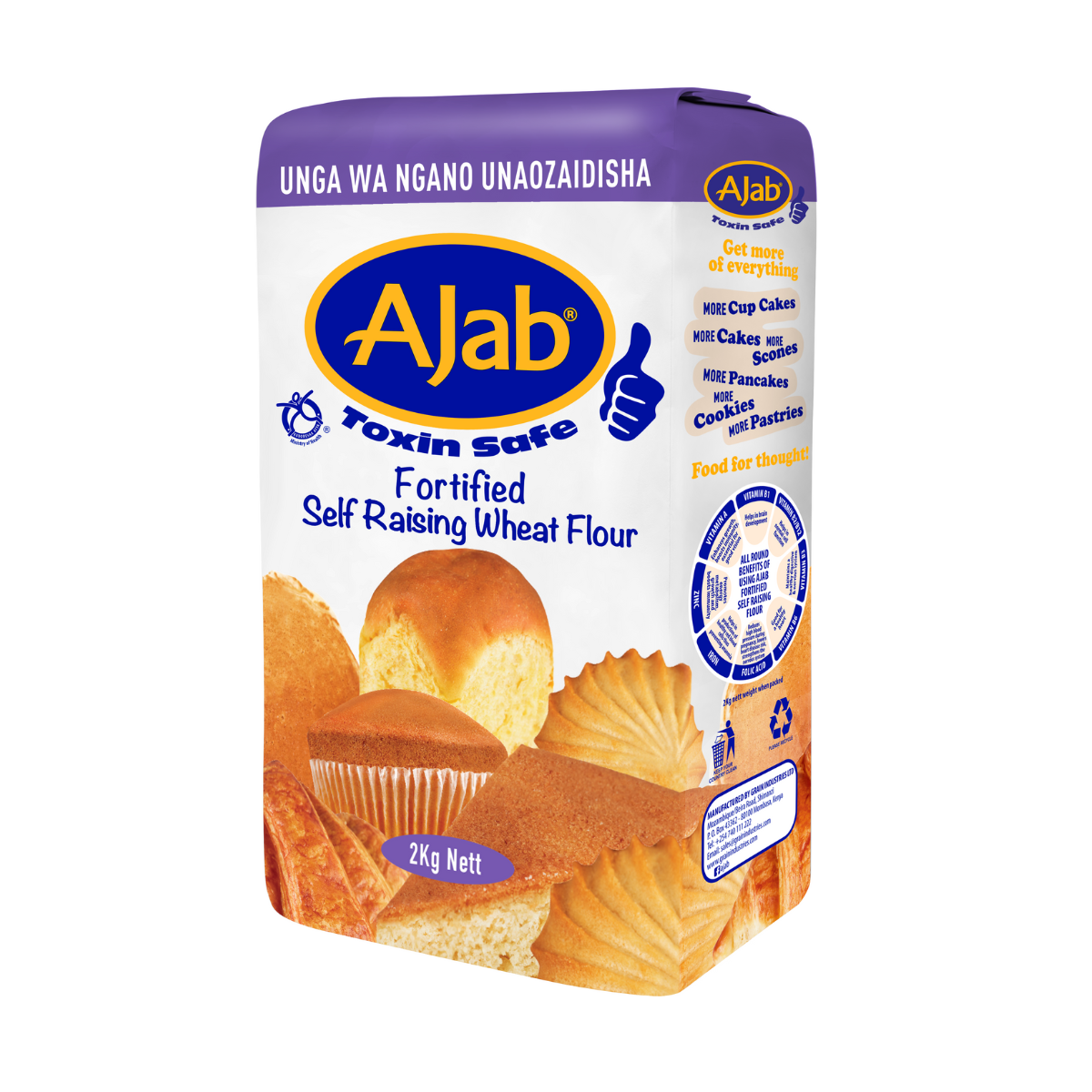 Ajab Fortified Self Raising Flour is a refined flour mixed with a leavening agent making it ready to use and convenient for all levels of users. It is perfect for baking.