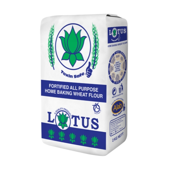 Lotus Fortified all-purpose home baking flour is a wheat flour milled from a blend of local and imported premium wheat varieties and enriched with vitamins and minerals during the milling process to enhance the flour properties.